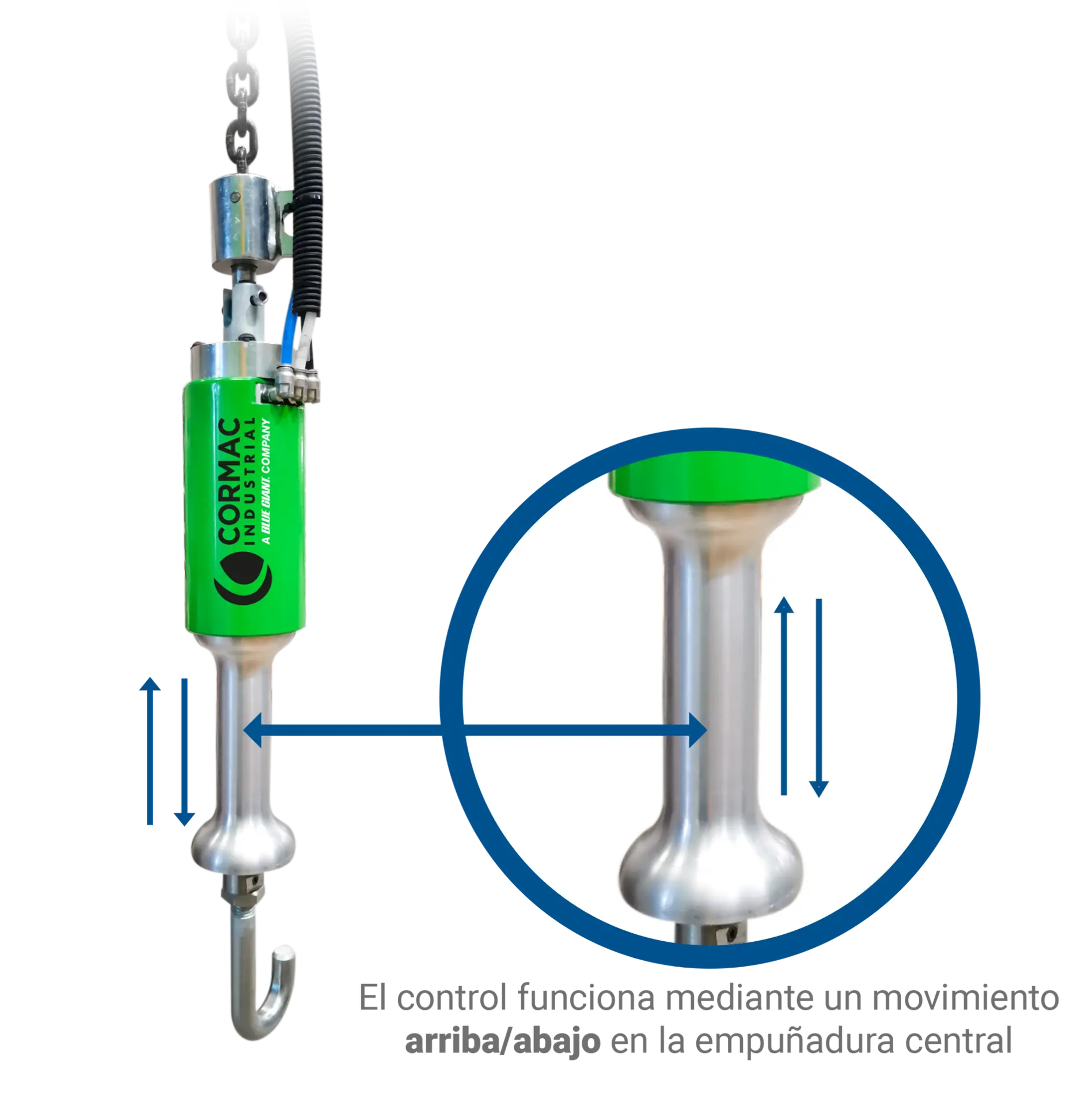 Diseñado para aplicaciones de levante y posicionamiento de cargas, sustituye el uso del maneral alejado de la carga. Brinda al operador la sensación de flotación, lo cual le permite tener mayor control de la carga suspendida.